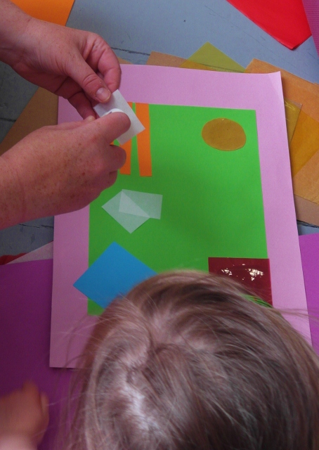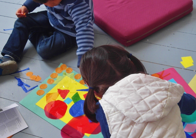 In the company of IMMA staff, children and grown-ups had an opportunity to experience exhibitions and explore ideas, materials and processes while making their own artworks. What a range of exhibitions and artworks we got to visit: Kenneth Hall’s works in the IMMA Collection exhibition Fragments, the Midcentury Studio photos in Stan Douglas’s Mise en Scène, the colourful oil paintings and delicate leporellos of Etel Adnan, and the revolutionary forms, shapes and letters in El Lissitzky’s work.